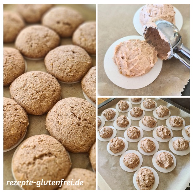 4. Die Backbleche nacheinander bei 175 Grad (Ober- und Unterhitze, auf mittlerer Schiene) etwas 15 Minuten backen. Anschließend auskühlen lassen.